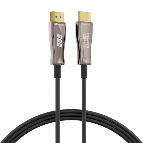 Unser AOC (Active Optical Cable) HDMI Kabel ist die ideale Lösung für professionelle Anwendungen im Bereich AV-Installationen, Digital Signage, Konferenztechnik, Home Entertainment und mehr. Dank modernster Glasfasertechnologie überträgt dieses aktive HDMI 2.0 Kabel Inhalte in gestochen scharfer 4K-Auflösung bei 60 Hz – verlustfrei und störungsfrei über Distanzen von 10 m bis 50 m.