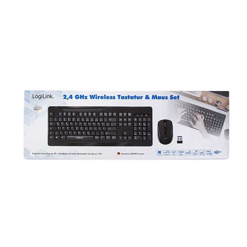 LogiLink® ID0194 2.4GHz Funk Tastatur+Maus Set, Flaches Design, Funk USB Micro Dongle, schwarz-silber