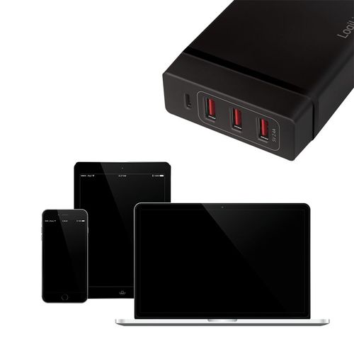 LogiLink® PA0122 Wandladeadapter/Netzstecker 100-240V 3x USB-A, 1 x USB-C (PD), 72W – schwarz