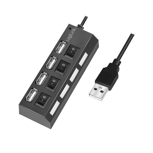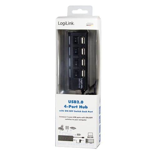 LogiLink® UA0128 USB 2.0 4-Port Hub, aktiv, inkl. Netzteil 5V/2A , ein/aus Schalter, LED – schwarz