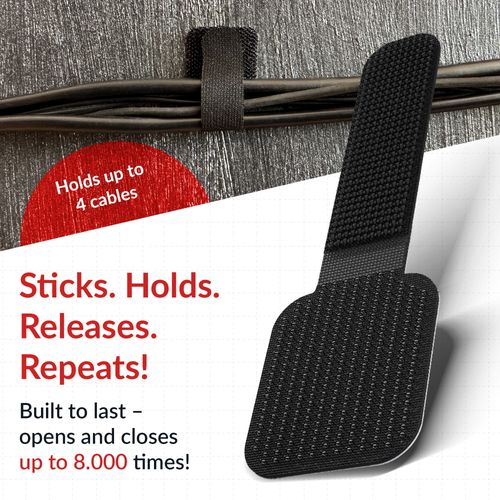 Die LABEL THE CABLE WALL STRAPS revolutionieren Ihr Kabelmanagement mit praktischer und flexibler Kabelführung ohne Bohren oder Werkzeug. Diese innovativen Kabelhalter mit einem Klebe-Fuß von (30mm x 28mm) und einer Klettlasche von (60mm x 15mm) kombiniert eine starke Klebefläche mit praktischem Klettverschluss für ein intelligentes Kabelmanagement in jedem Bereich. WALL STRAPS eignen sich aber auch zur Führung von Drähten, Schläuchen und Kletterpflanzen, oder zum Basteln und sind so maximal flexibel einsetzbar.