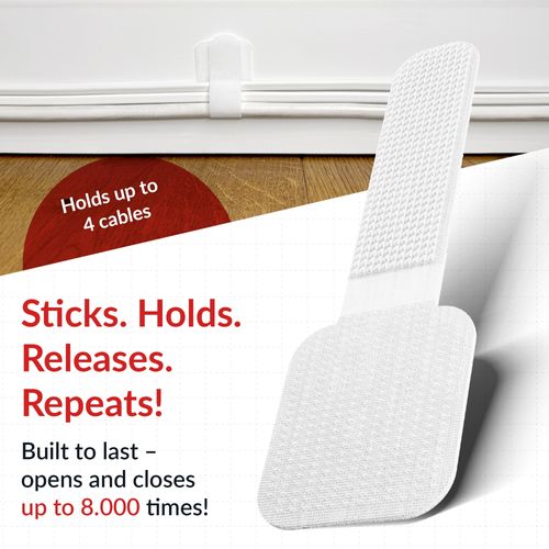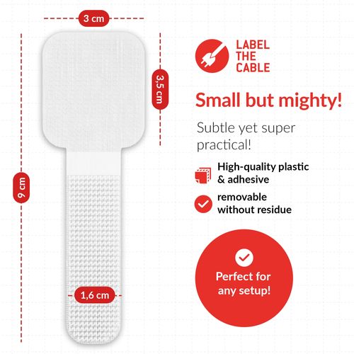 Die LABEL THE CABLE WALL STRAPS revolutionieren Ihr Kabelmanagement mit praktischer und flexibler Kabelführung ohne Bohren oder Werkzeug. Diese innovativen Kabelhalter mit einem Klebe-Fuß von (30mm x 28mm) und einer Klettlasche von (60mm x 15mm) kombiniert eine starke Klebefläche mit praktischem Klettverschluss für ein intelligentes Kabelmanagement in jedem Bereich. WALL STRAPS eignen sich aber auch zur Führung von Drähten, Schläuchen und Kletterpflanzen, oder zum Basteln und sind so maximal flexibel einsetzbar.