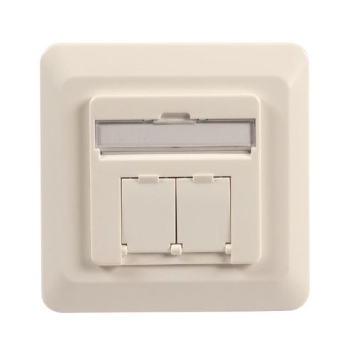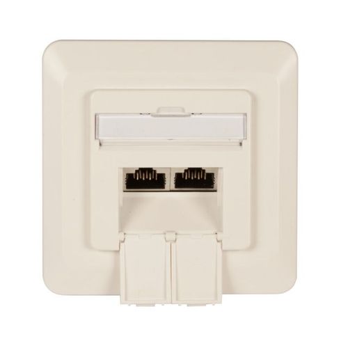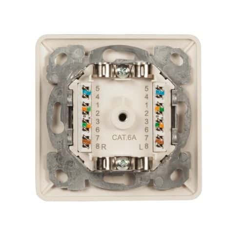 MegaD Datendose Cat. 6A 500MHz, 10Gbit, designfähig 2fach UPEK, 2x RJ45 STP, RAL9010, horizontal – links/rechts