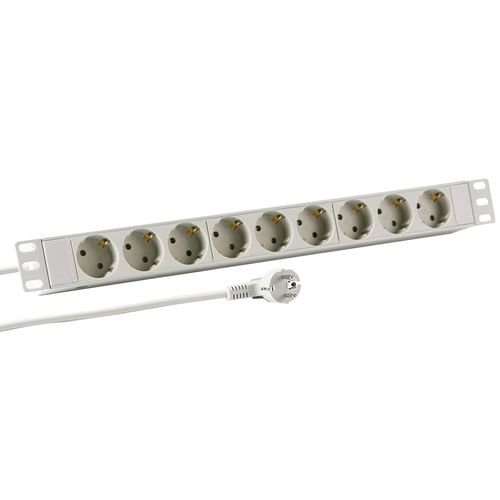 MegaS 19″ Steckdosenleiste, 9-fach CEE 7/3, ohne Schalter, Alugehäuse, 1HE – grau