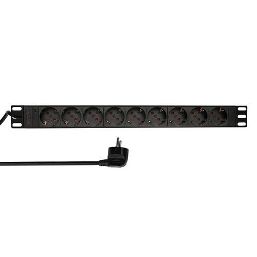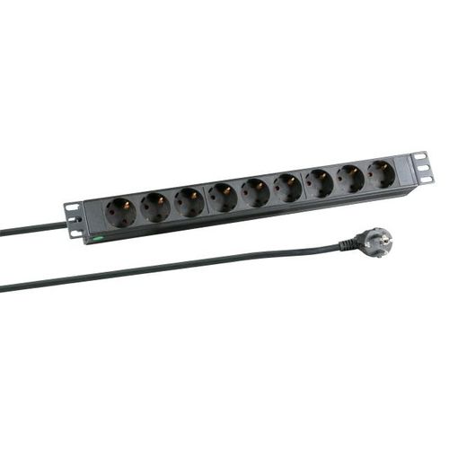 MegaS 19″ Steckdosenleiste, 9-fach CEE 7/3, ohne Schalter, Alugehäuse, 1HE – schwarz